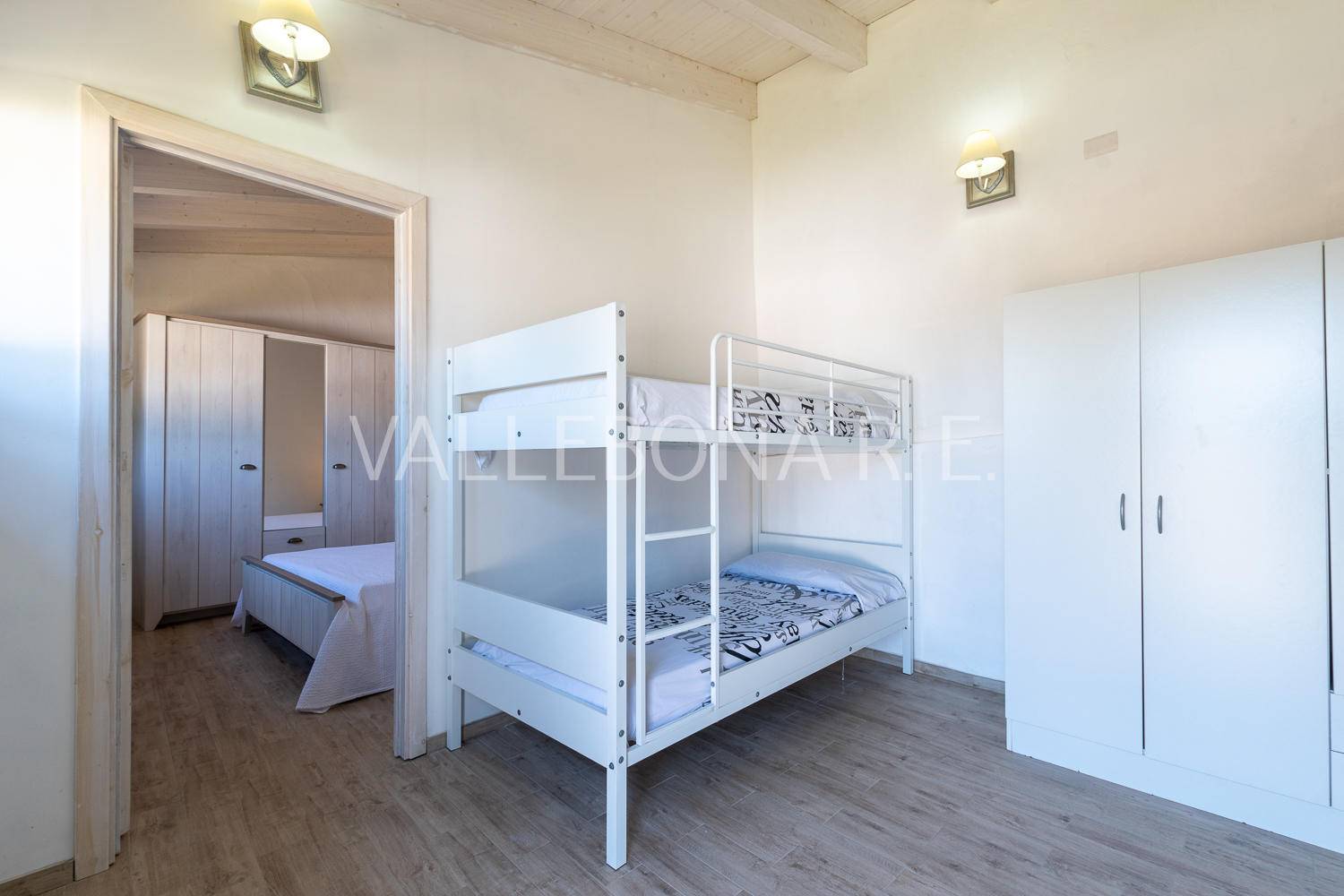 2) Casa con loggiato: soggiorno con angolo cottura, 1 ampia camera matrimoniale con possibilità di letto aggiuntivo, 1 ampia camera tripla composta da 1 letto matrimoniale e 1 letto singolo, 2 ampi bagni.