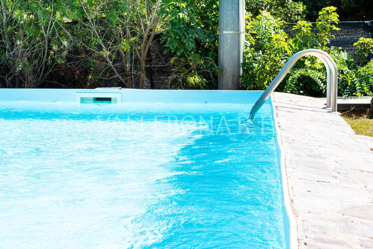 Ampio giardino ben curato, piscina e barbecue.