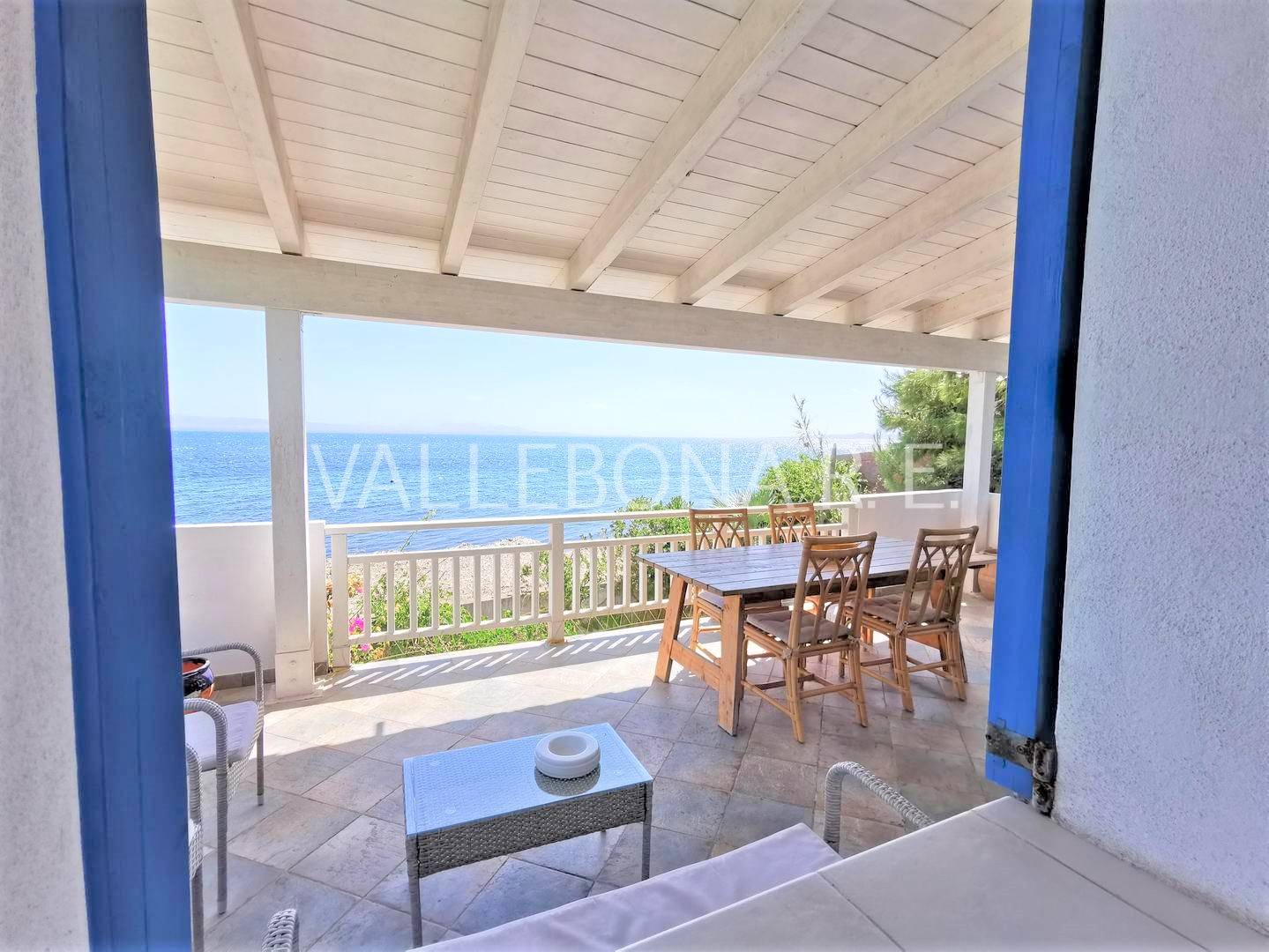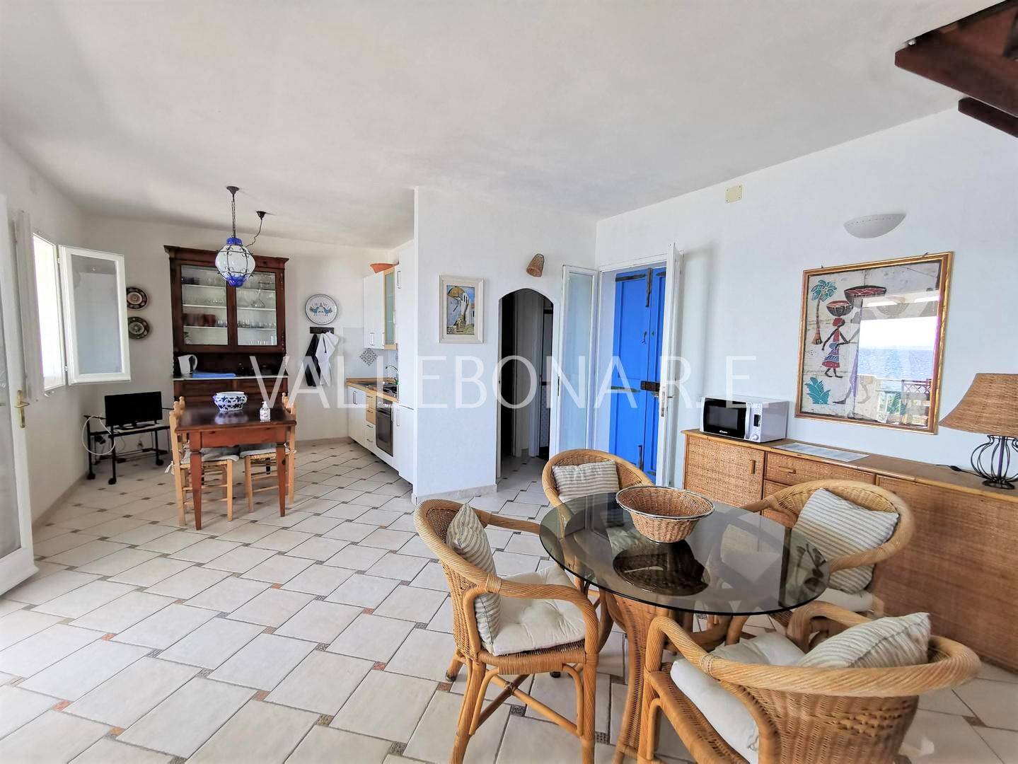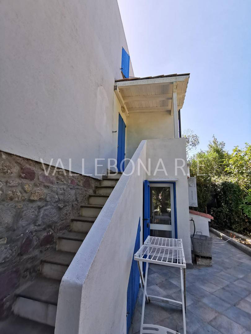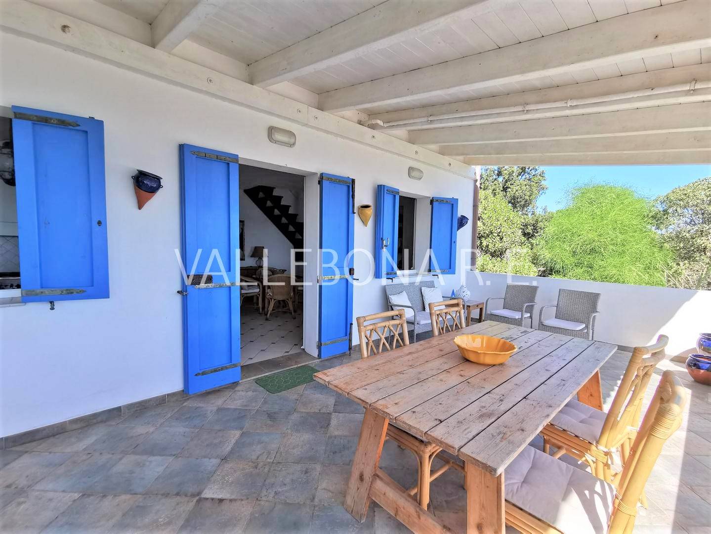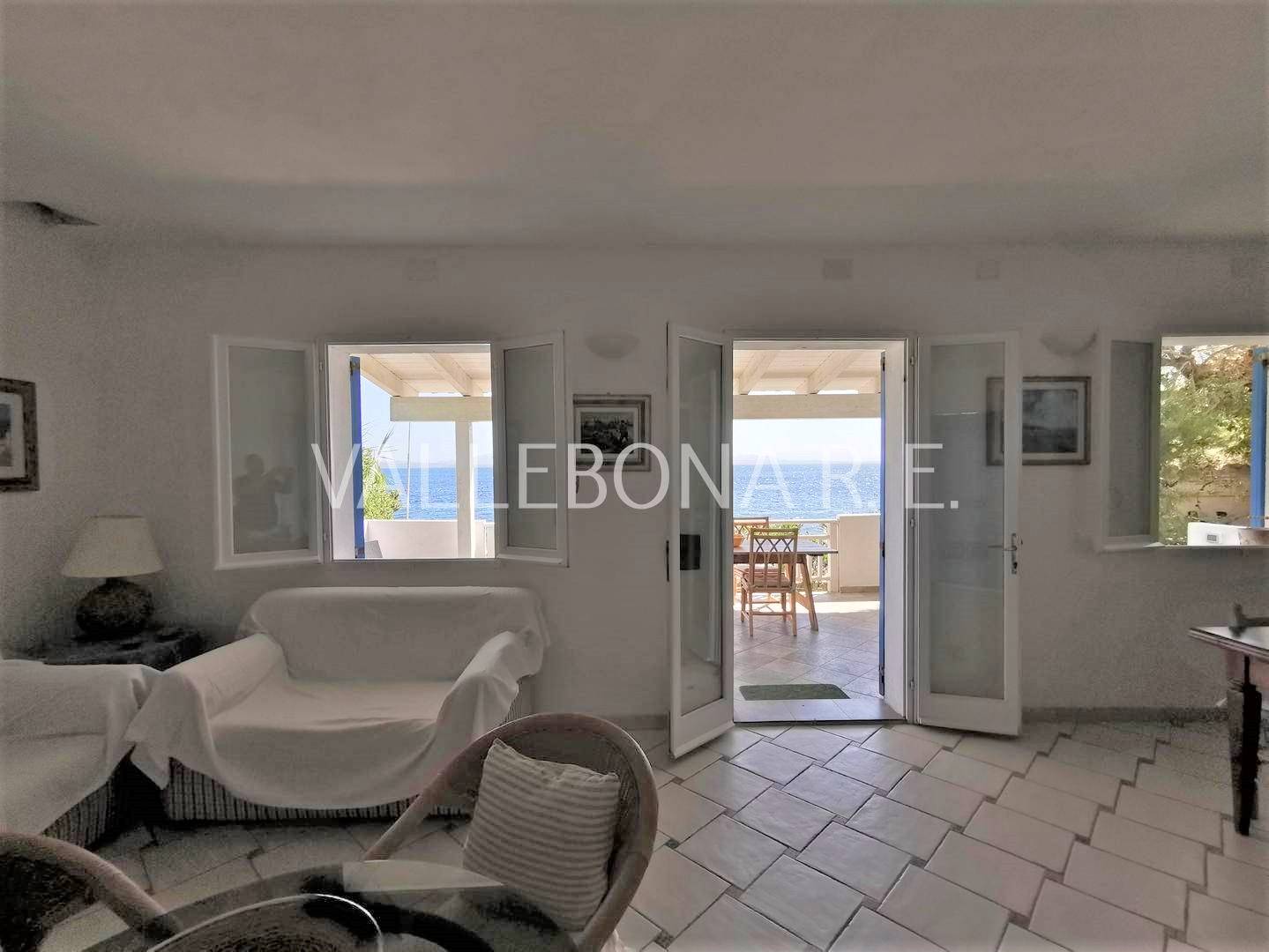 DESCRIZIONE: Villa disposta su tre livelli composta da soggiorno con terrazza panoramica fronte mare, cucina a vista e bagno al piano rialzato; due camere da letto e un bagno al primo piano con piccola terrazza vista; al piano terra, ampio locale con bagno e accesso indipendente con predisposizione per cucina, utilizzabile come depandance. ESTERNI: Barbecue, doccia esterna, terreno di pertinenza con ampio parcheggio.