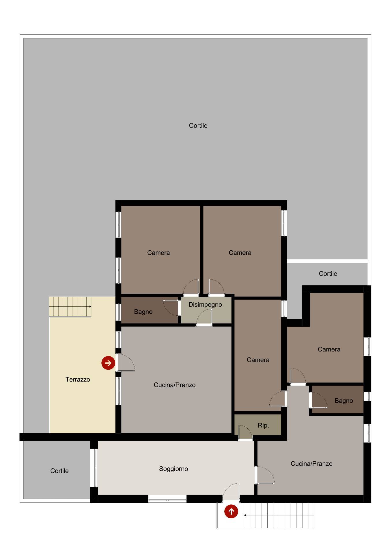 Attualmente l'immobile è frazionato in due unità immobiliari facilmente unificabili abbattendo una parete.